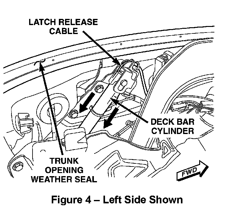 e. Remove the deck lid forward latch bracket retaining bolts (Figure 5).