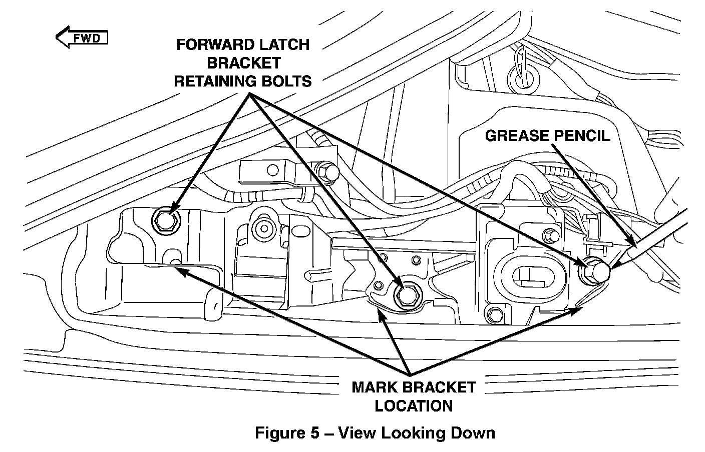 a. Using a grease pencil, mark the left side deck lid forward latch bracket location (Figure 5).