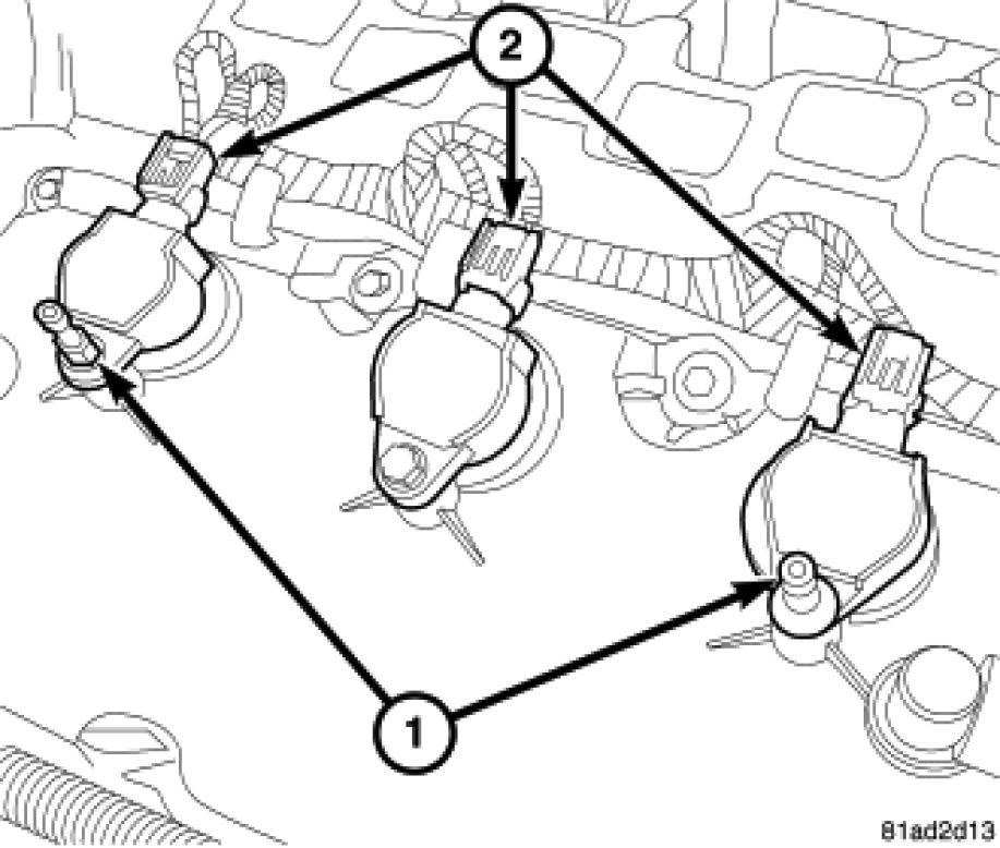 3. Install ignition coil mounting bolt (1). Tighten bolt to 8 Nm (71 in. lbs.).