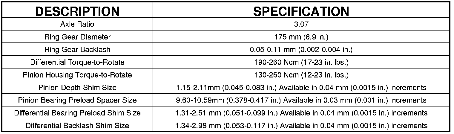 TORQUE SPECIFICATIONS