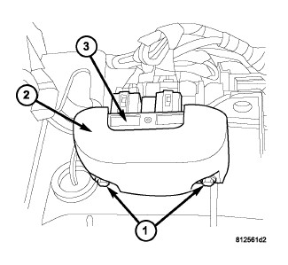 4. If equipped with a trim cover (2), install the trim cover over the blower motor power module (3) and install the two retaining screws (1). Tighten the screws to 2 Nm (17 in. lbs.).