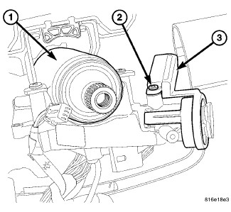 1. Position the SKREEM/WCM (3) on the ignition lock housing and install the retaining screw (2).