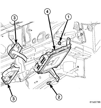 7. Remove bolts (3) and separate the PCM (2) from bracket (1).