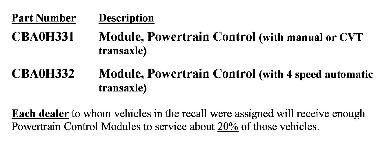 The Powertrain Control Module (PCM) on about 680 of the above vehicles may have been manufactured with an adhesive that could cause the printed circuit board to break. This can cause the engine to stall and result in a crash without warning.