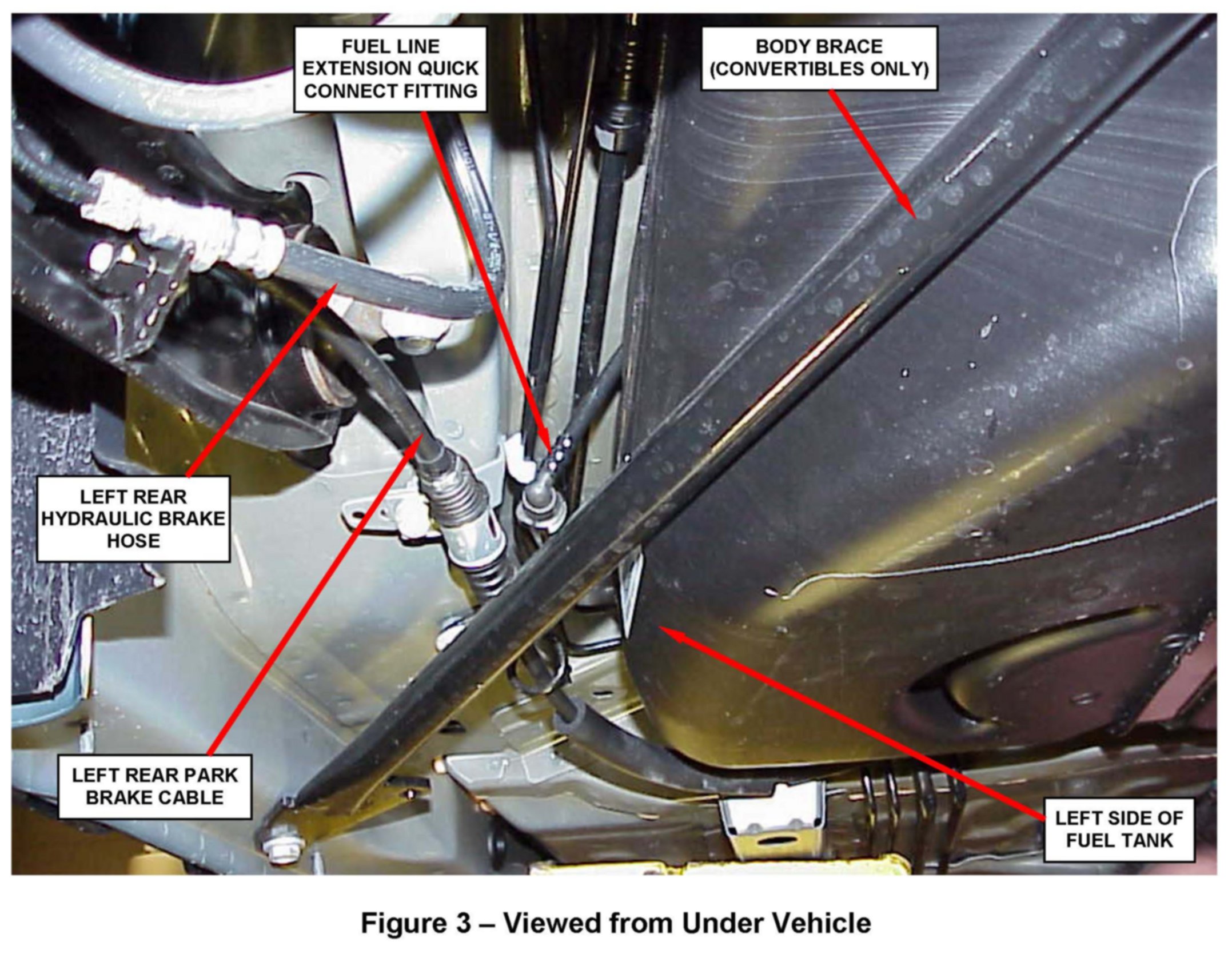 12. Disconnect the fuel line extension quick connect fitting where it meets the underbody fuel line bundle (Figure 3).