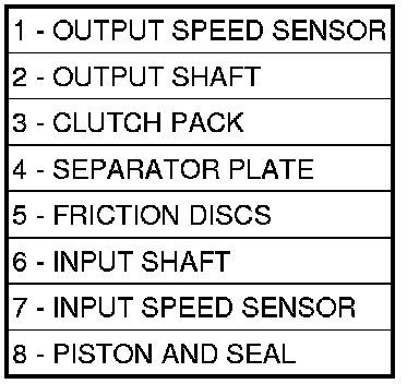 Certain mechanical problems within the clutch assemblies (broken return springs, out of position snap rings, excessive clutch pack clearance, improper assembly, etc.) can cause inadequate or out-of-range clutch volumes. Also, defective Input/Output Speed Sensors and wiring can cause these conditions. The following chart identifies the appropriate clutch volumes and when they are monitored/updated: