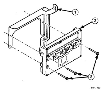 1. Install the Powertrain Control Module (PCM) (2) to bracket (1). Tighten bolts (3) to 5 Nm (45 in. lbs.).