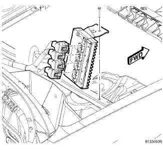 3. Remove the bolt that secures the Powertrain Control Module (PCM) and bracket to the cross support.