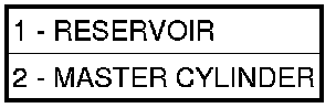 Master cylinder reservoirs (1) are marked, FULL and ADD, indicating the allowable brake fluid level range in the master cylinder fluid reservoir.