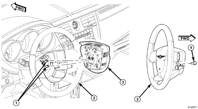 4. Install horn switch (2) to steering wheel.