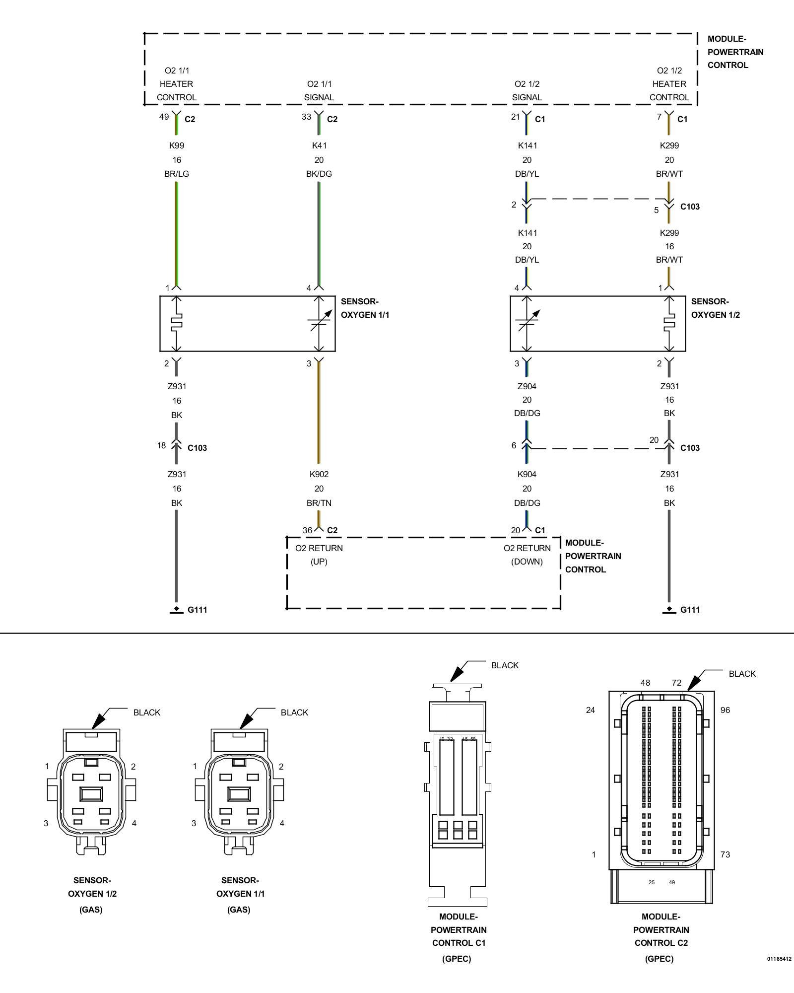 1. Using the wiring diagram/schematic as a guide, inspect the wiring and connectors between the O2 sensor and the PCM.