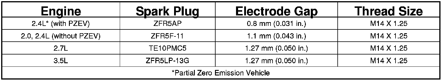 Spark Plug Specifications