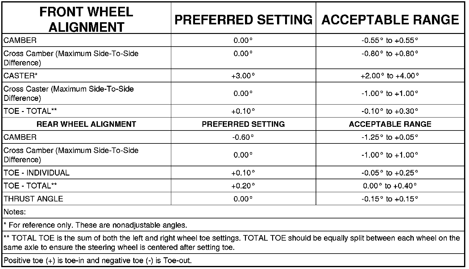 All wheel alignments are to be set with the vehicle at curb height.