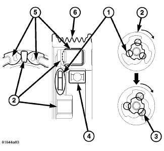The bridges (1) located on the non-servicable compressor hub (2) are designed to break away in the event of compressor seizure. Examine the bridges for separation or cracks (3). Damage to the bridges are an indication of excessive compressor torque, which is most likely caused by compressor failure.