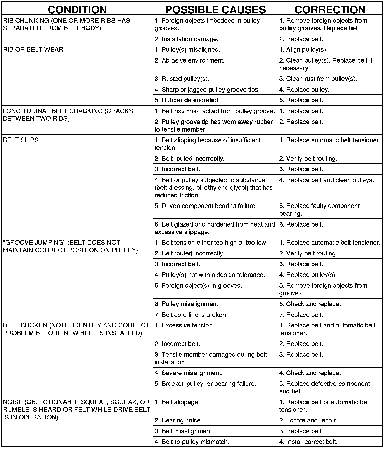 ACCESSORY DRIVE BELT DIAGNOSIS CHART