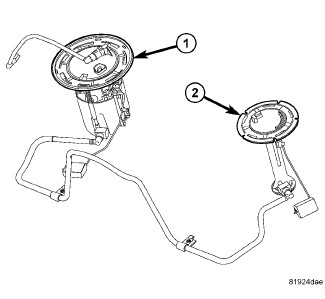 The AWD fuel pump modules contains the main fuel pump module (1), auxiliary fuel pump module (2), main fuel level sending unit, auxiliary fuel level sending unit, fuel pump reservoir, fuel pressure regulator and fuel filter.