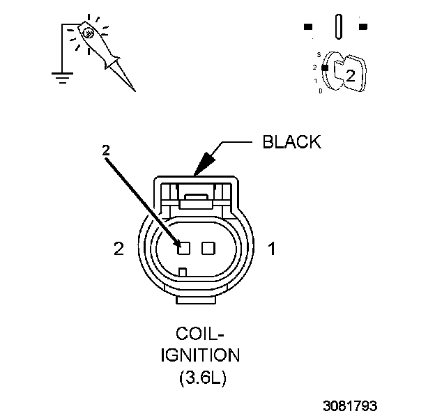 1. Using a 12-Volt test light connected to 12 Volts, check the Ignition Coil control circuit for the cylinder being tested in the Ignition Coil harness connector.