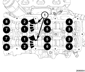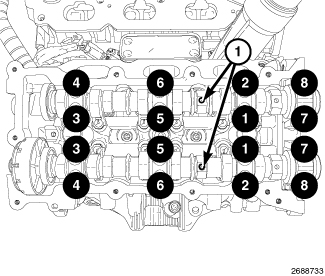 Camshaft bearing caps and hand tighten the retaining bolts 2 Nm (18 in. lbs.)