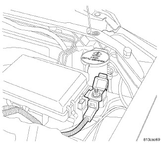 NOTE: The battery is stored under an access cover in the trunk. Remote battery terminals are located in the engine compartment for jump starting.