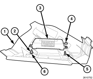 3. Slide DTCM from mounting stud (6) and remove from drivers side foot rest (3).