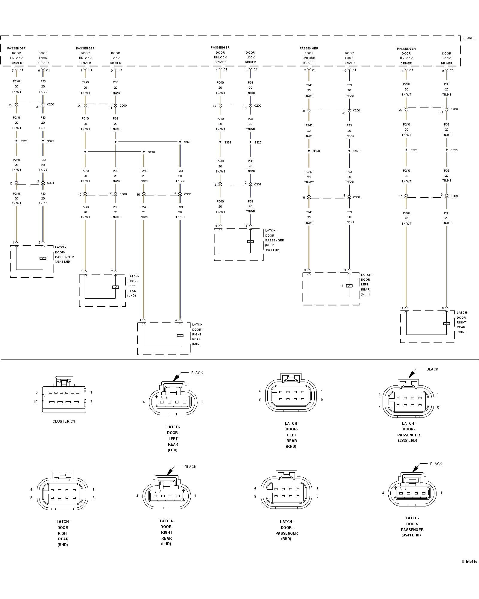 - Repair the (P33) Door Lock Driver for a short to the (P240) Passenger Doors Unlock Driver circuit.