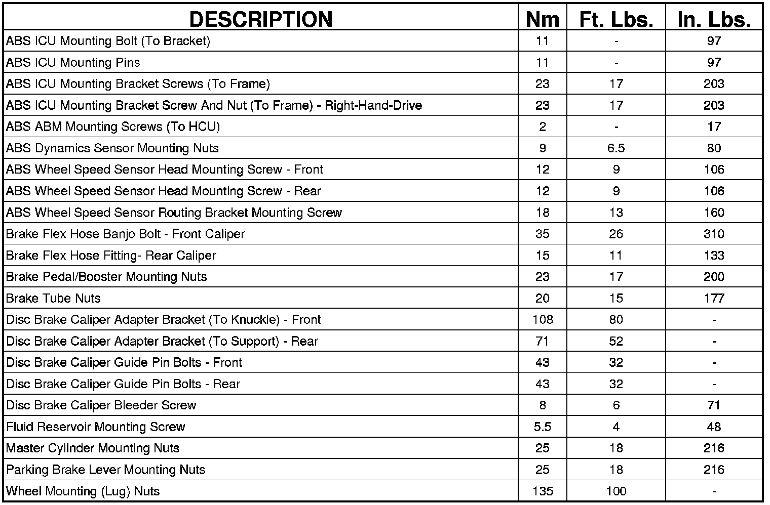 Brakes and Traction Control: Specifications