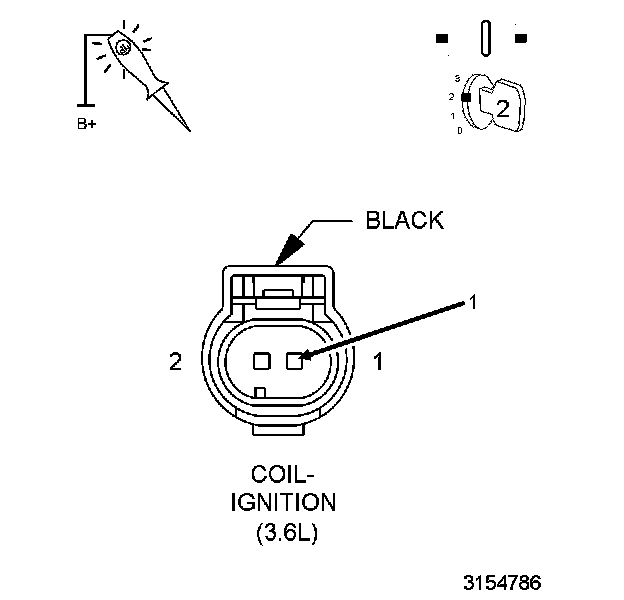 1. Using a 12-Volt test light connected to 12 Volts, check the Ignition Coil control circuit for the cylinder being tested in the Ignition Coil harness connector.