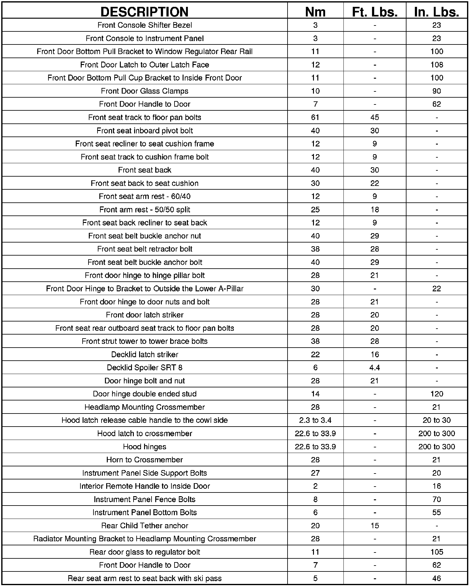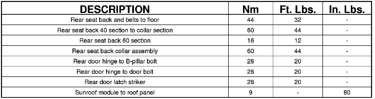 TORQUE SPECIFICATIONS