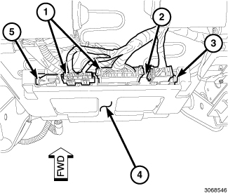 NOTE: Depending on how equipped, more memory seat module electrical connectors may be present than shown in the illustration.
