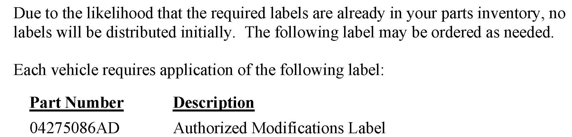 All involved vehicle owners known to Chrysler are being notified of the service requirement by first class mail. They are requested to schedule appointments for this service with their dealers. A generic copy of the owner letter is included.