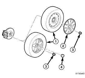 3. Install the tire and wheel assembly (1) Tires And Wheels - Installation. Install and tighten the wheel mounting nuts (3) to 135 Nm (100 ft. lbs.).