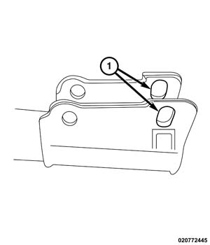 NOTE: Service struts have an elongated lower hole (1) in the strut clevis bracket which will be used with the service bolt package to adjust front camber.