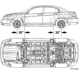 Do not position hoisting device on suspension components. Damage to vehicle can result.