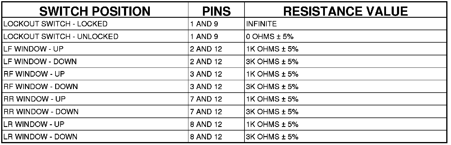 DIAGNOSIS AND TESTING - SWITCH - POWER WINDOW