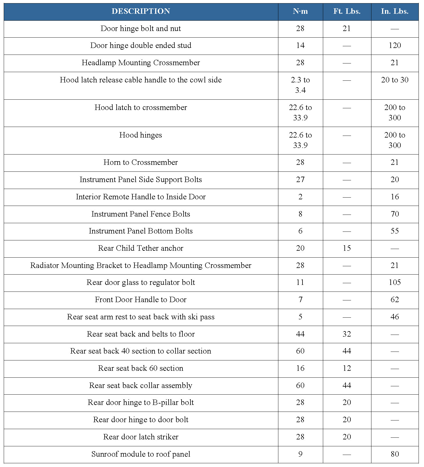 TORQUE SPECIFICATIONS