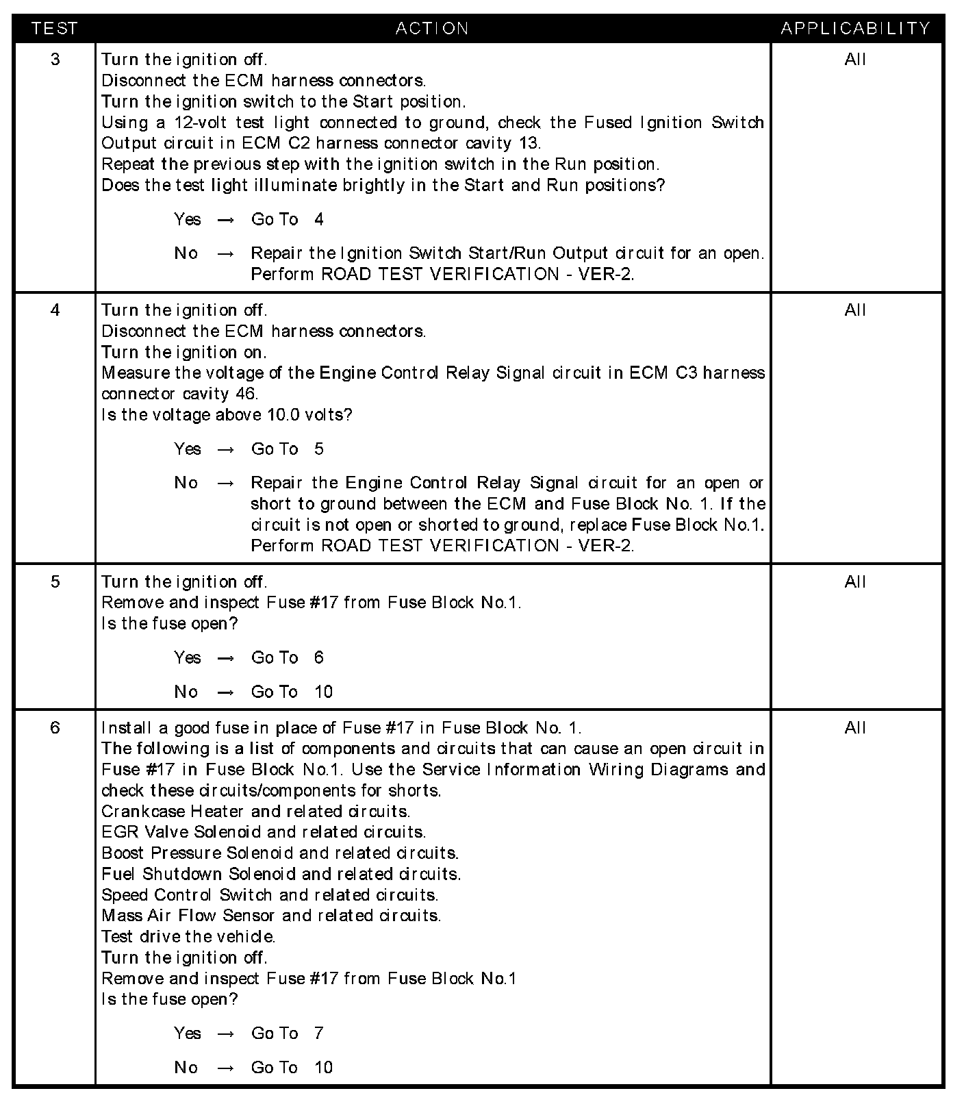 - Engine control relay output CKT shorted to ground fuse #17