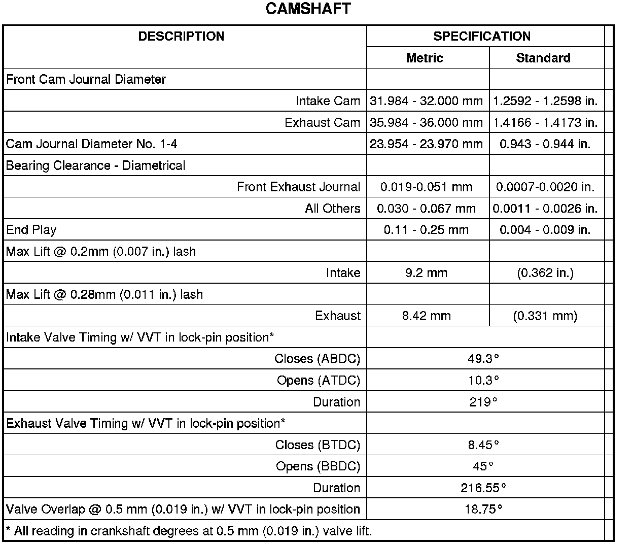 Engine Specifications