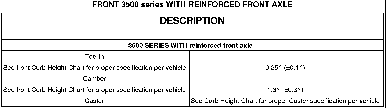WHEEL ALIGNMENT, CURB HEIGHT, AND TORQUE SPECIFICATIONS