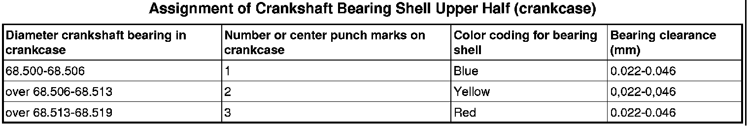 CRANKSHAFT MAIN BEARING SIZE CODES