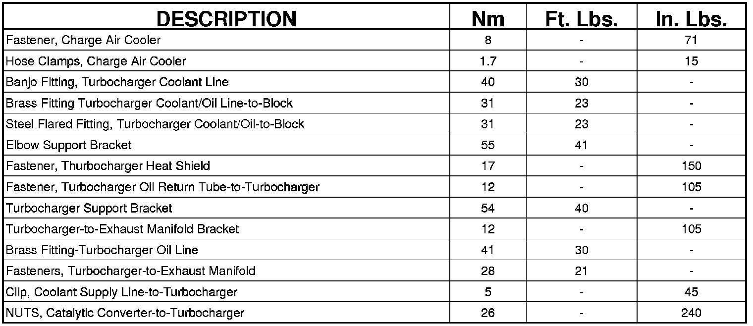 Exhaust Manifold/Turbocharger to Cylinder Head-Bolts (Turbo models only) 34 Nm (25 ft. lbs.)