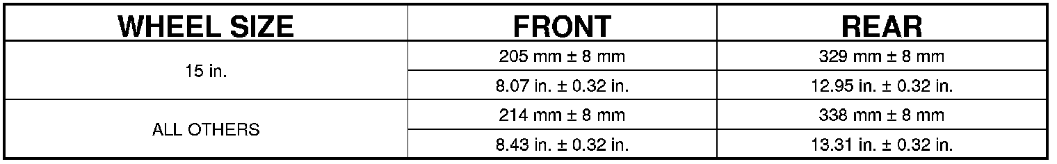 CURB HEIGHT SPECIFICATIONS - ALL OTHERS