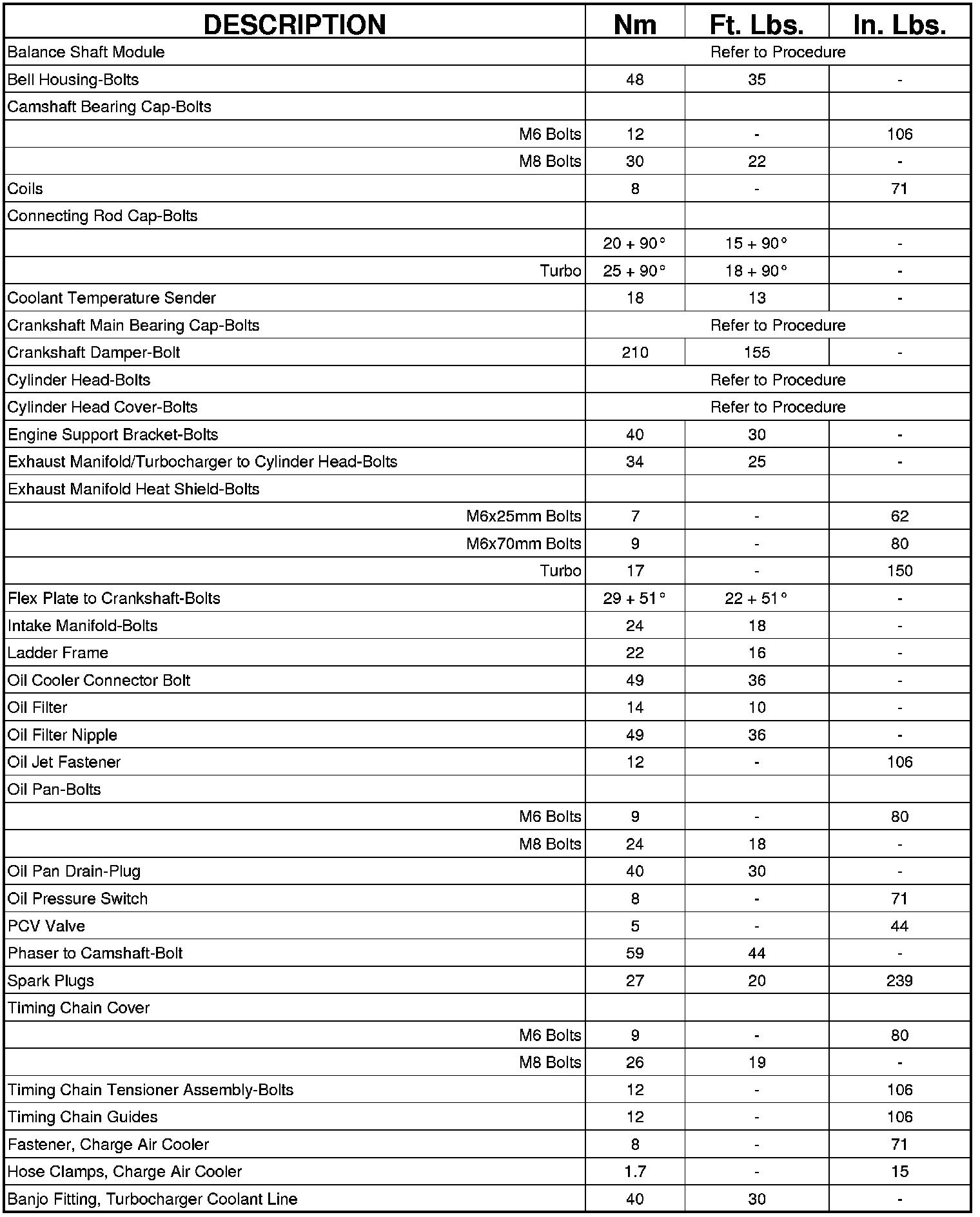 Engine Torque Specifications