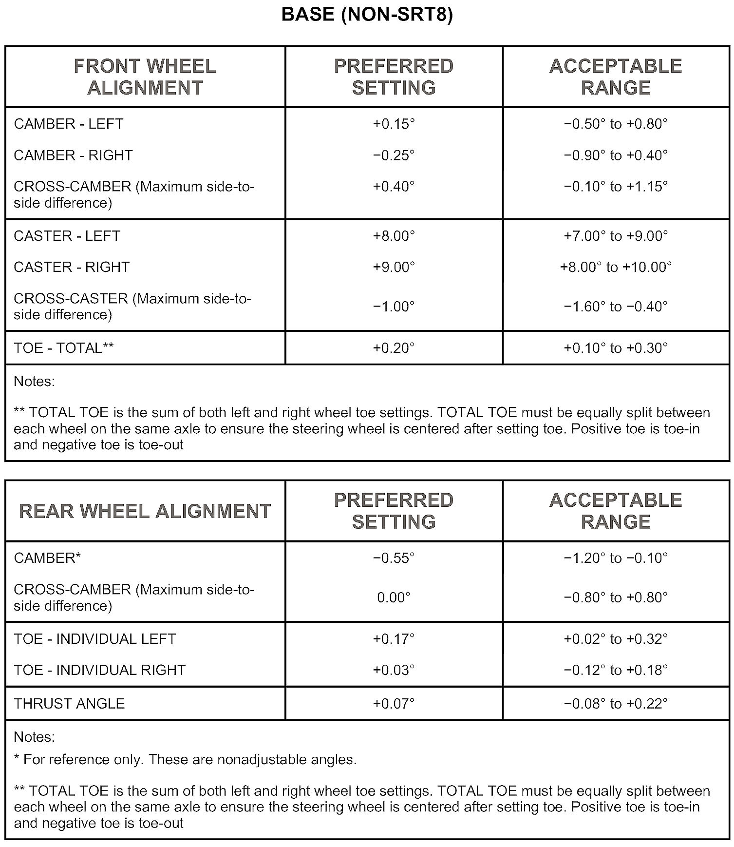 All wheel alignments are to be set at curb height.