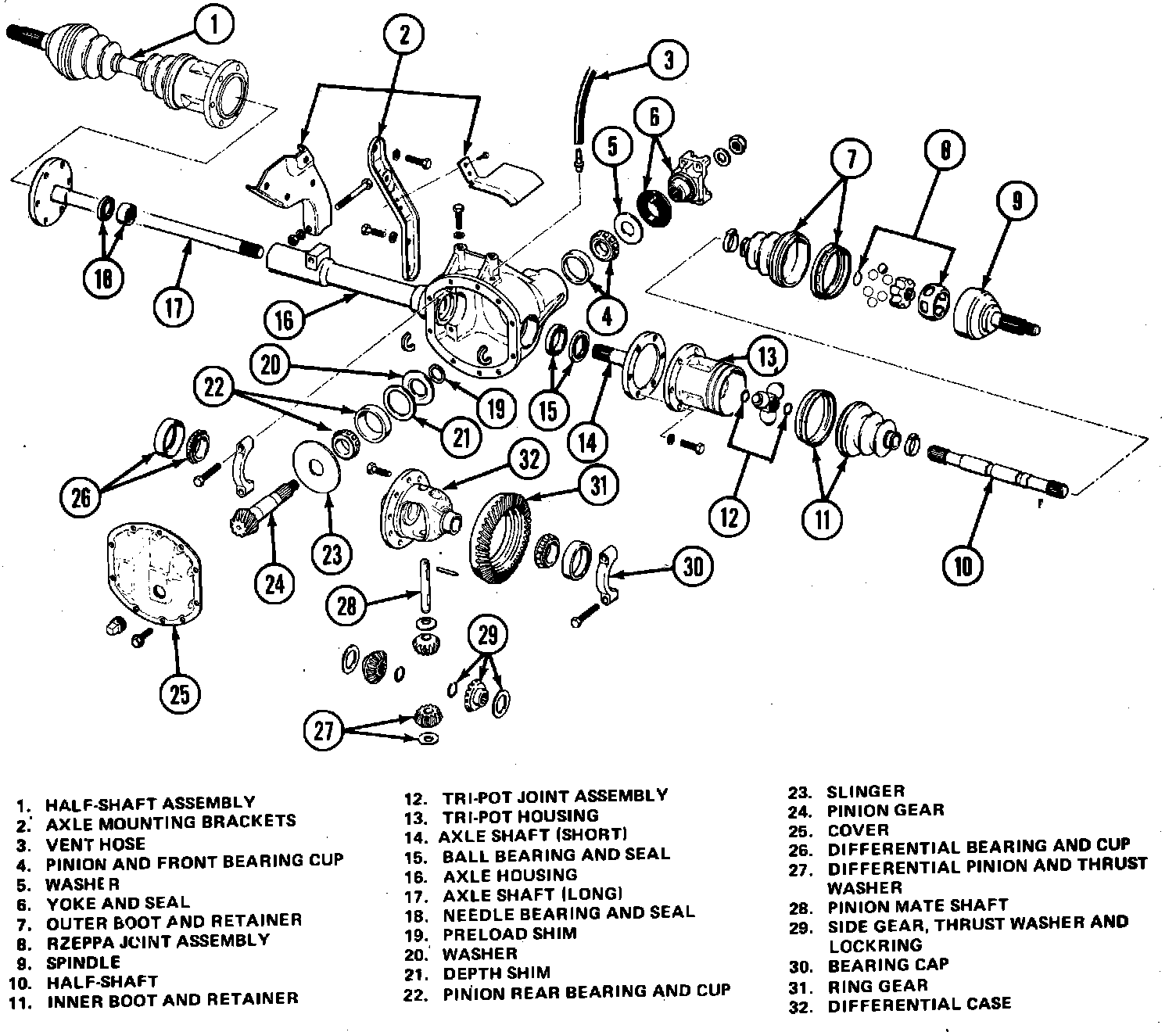 Fig. 4 Front axle assembly. 1982---84 Eagle less Select Drive System: