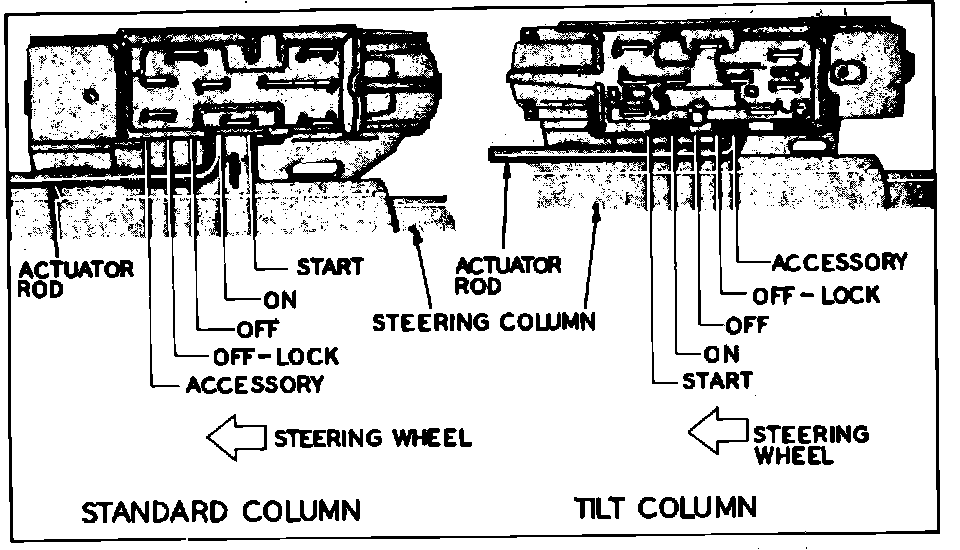 1. On standard steering columns, move slider to extreme left and on tilt steering columns, move slider to extreme right. This places the switch in the "Accessory" position.