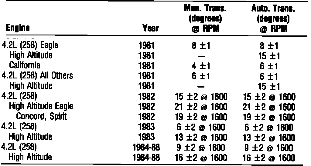 Ignition Timing: Specifications