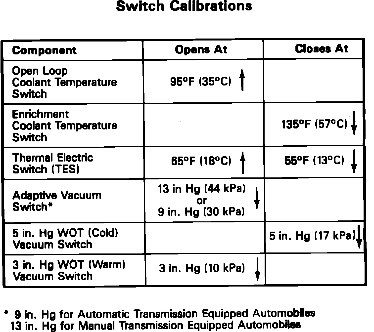 If the air cleaner air temperature is below the calibrated value of the thermal electric switch (TES), Figs. 11a and 12a, the air/fuel mixture is at a rich ratio. Lean air/fuel mixtures are not used for a preset period following a cold weather start-up.