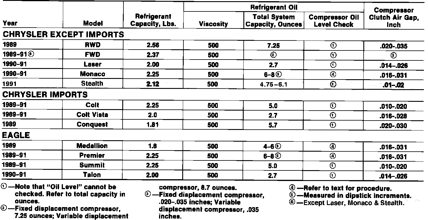 A/C Data Table: