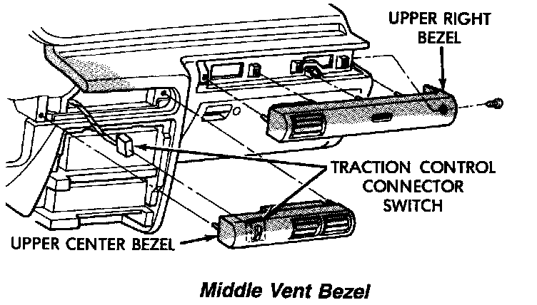 (8) Replace middle vent bezel, to the instrument panel. If the vehicle has a traction control switch check for functionality once the bezel is in place.