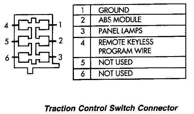 (4) Ground pin 4 of the traction control connector. This is the programming line for the Remote Keyless Entry Module. The door locks will lock and unlock, to indicate the receiver is ready to receive transmitter code. The trunk solenoid will not cycle at this time.